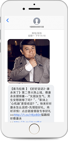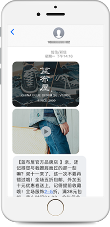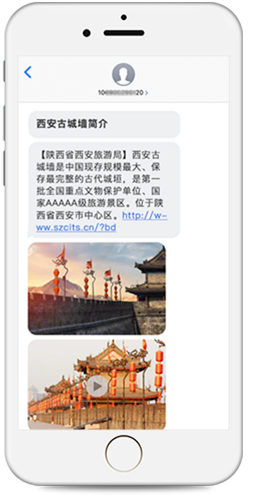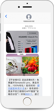 是普通文本短信的全新升级,集高清图片、高清音视频、超长文本于一体,帮助企业将更丰富的信息量,通过更直观的展现形式推送至用户端,实现快速、精准、有效的沟通与服务。